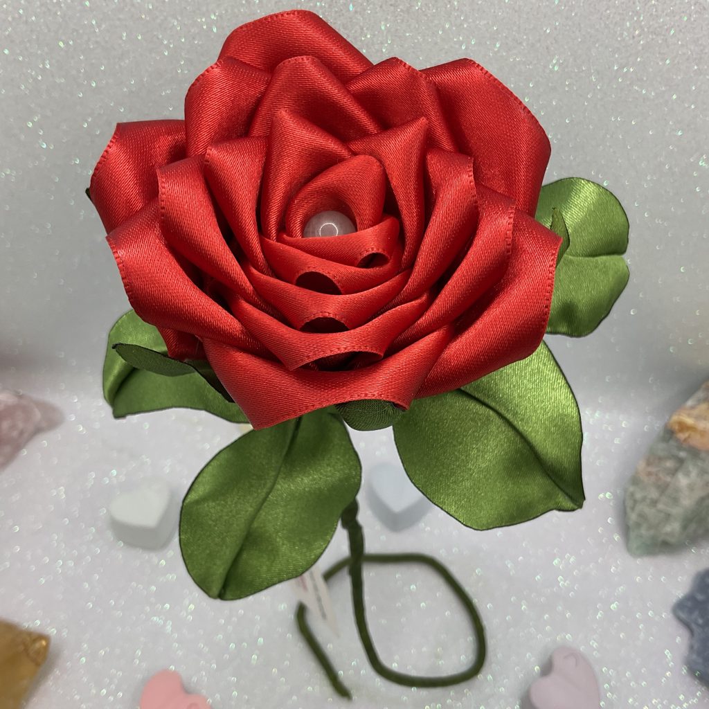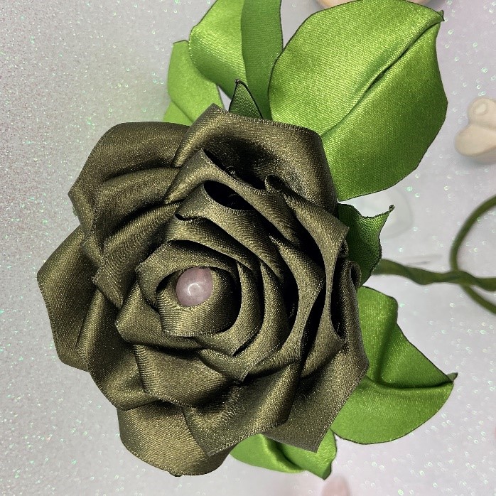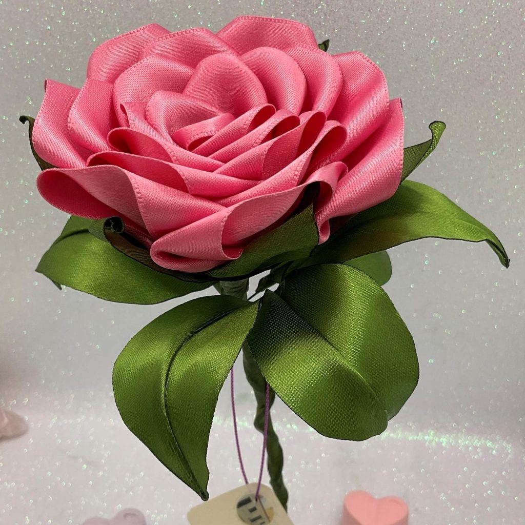 Rosa de Seda com Cristais Rosa