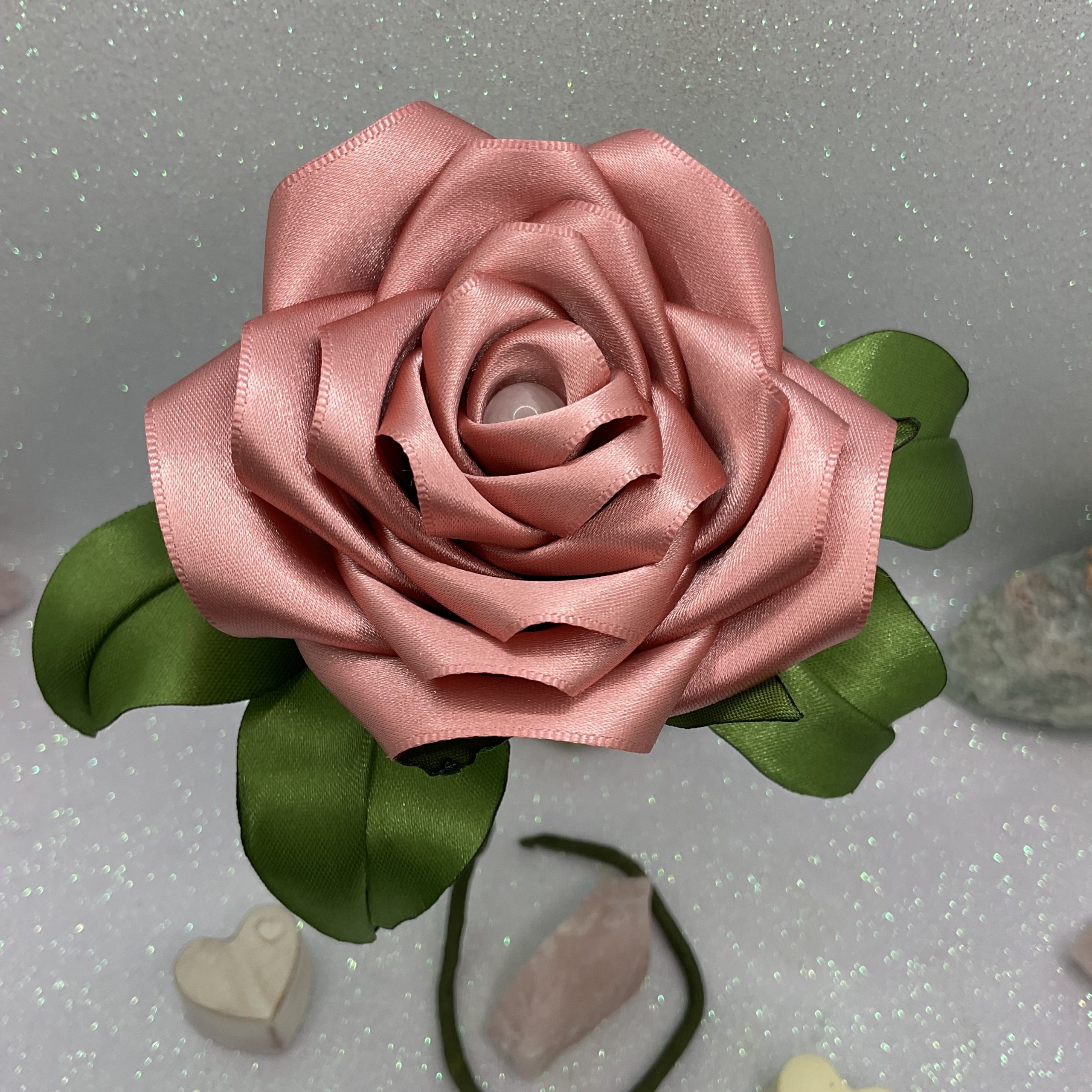 Rosa de Seda com Cristais Rosa Velho